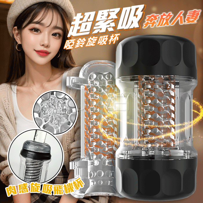 GALAKU.啞鈴旋吸杯 奔放人妻 肉感旋轉手動負壓吮吸降敏飛機杯-緊吸款【橙色】