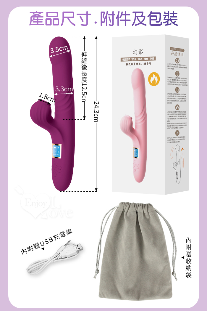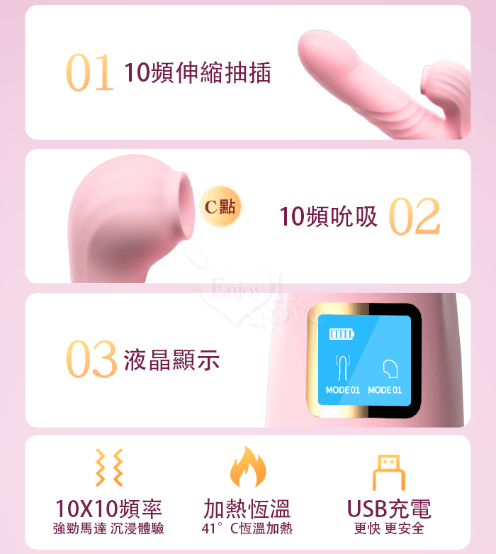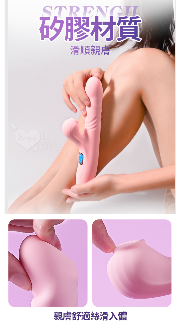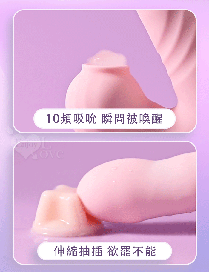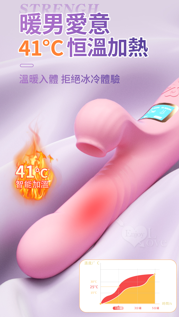 幻影 ‧ 10頻伸縮抽插X10頻吮吸智能內外夾攻按摩棒﹝加熱恆溫+液晶顯示頻率+USB充電﹞羅蘭紅