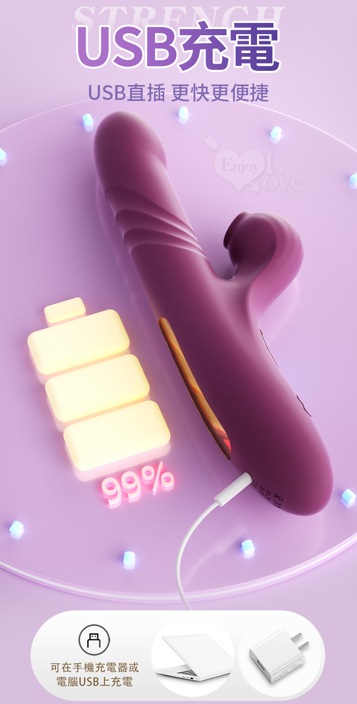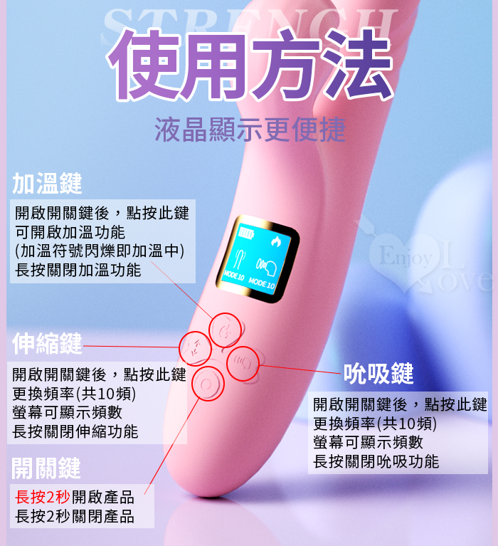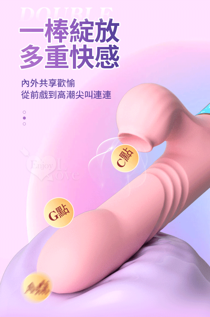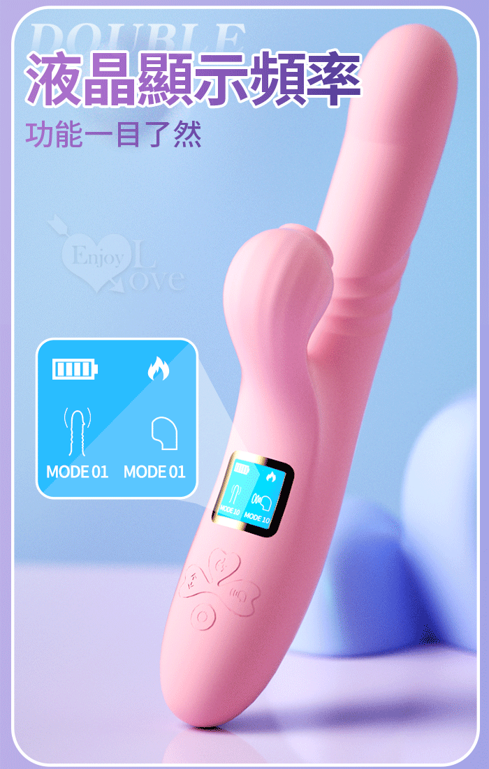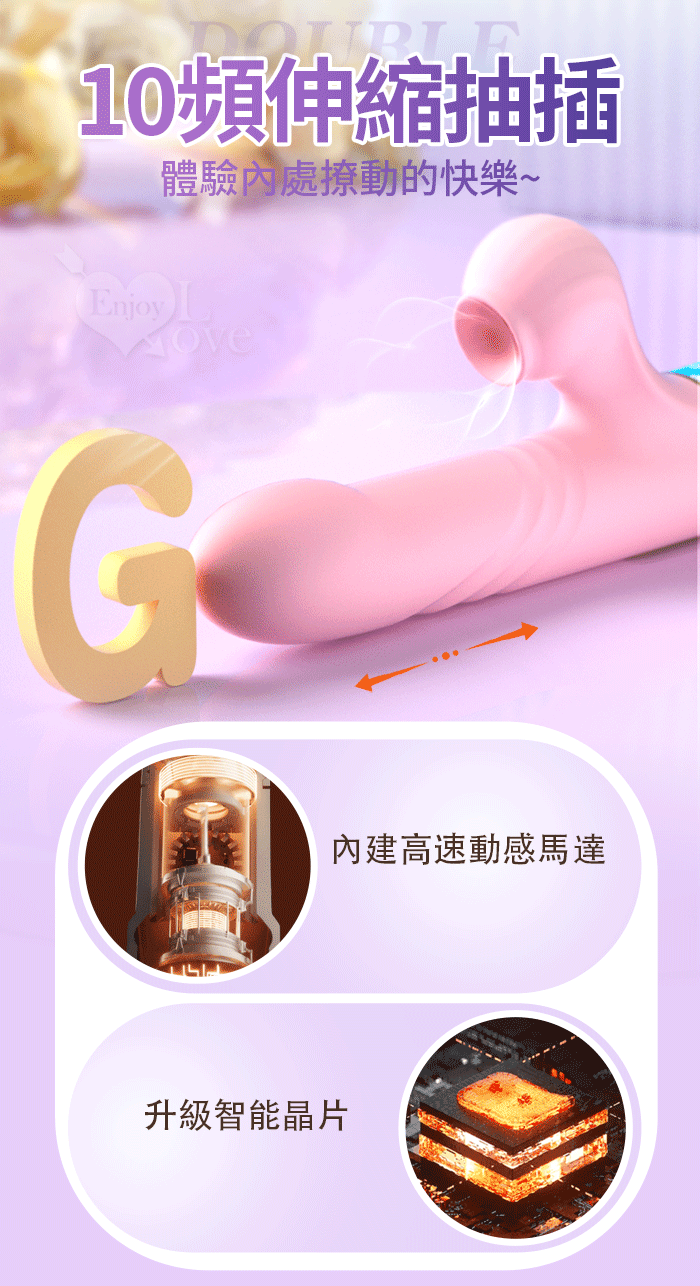 幻影 ‧ 10頻伸縮抽插X10頻吮吸智能內外夾攻按摩棒﹝加熱恆溫+液晶顯示頻率+USB充電﹞羅蘭紅