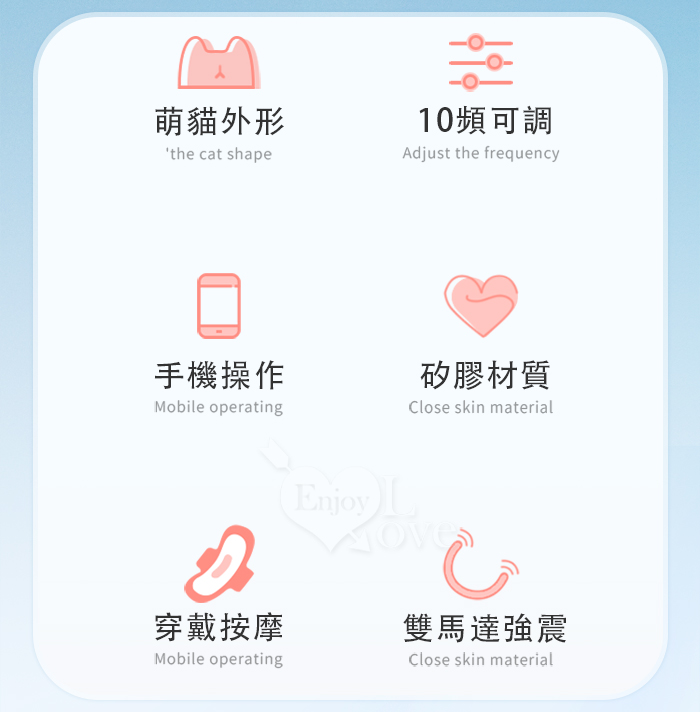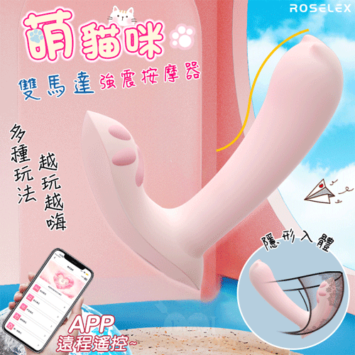 ROSELEX 勞樂斯 ‧ 萌貓咪 10頻內外雙馬達強震穿戴按摩器 - 可手機APP遙控﹝具兩種操控模式﹞淺粉