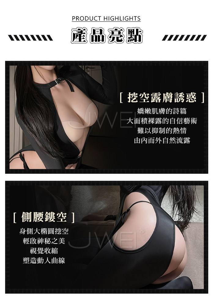 特工貓女.狂野挖空露胸側腰曲線鏤空開襠連身衣【開襠連身衣+皮帶+內褲】
