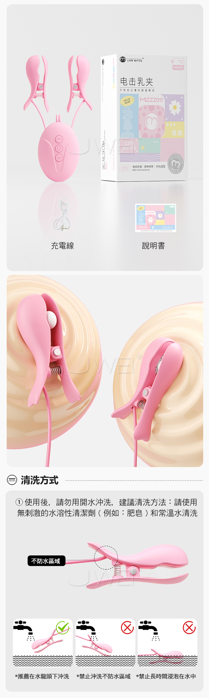 謎姬 MizzZee.電擊乳夾.6頻電擊+10頻強震撩乳爽電挑逗有線乳夾