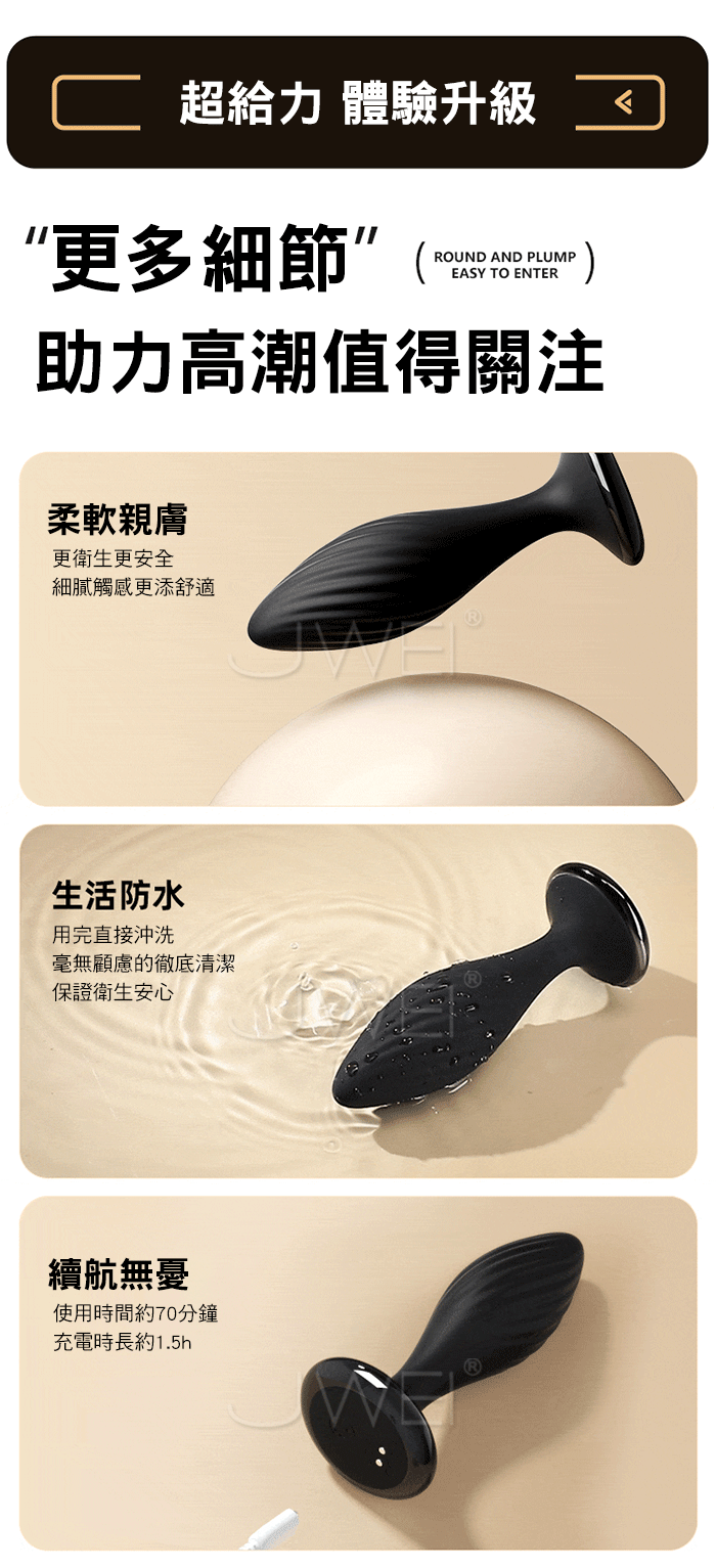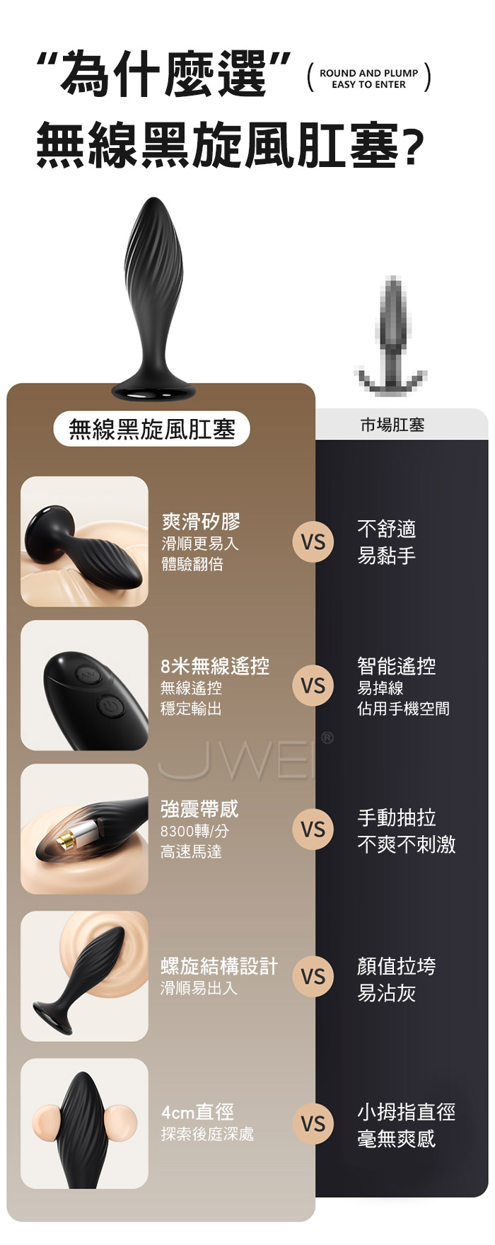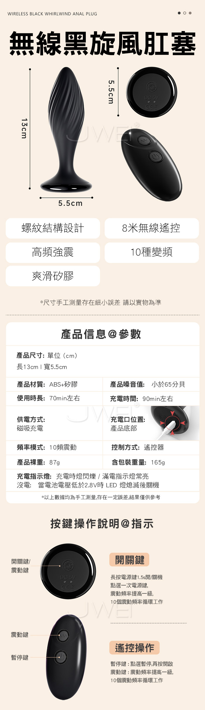 黑旋風.10頻高頻強震 螺旋結構探索後庭深處 無線遙控後庭肛塞