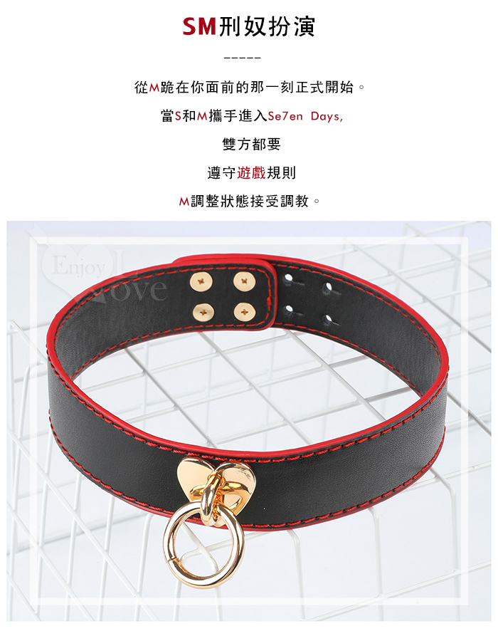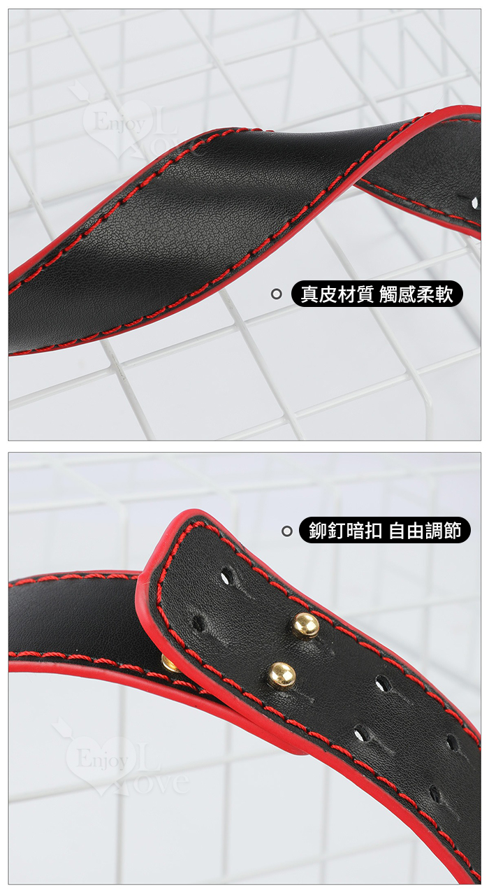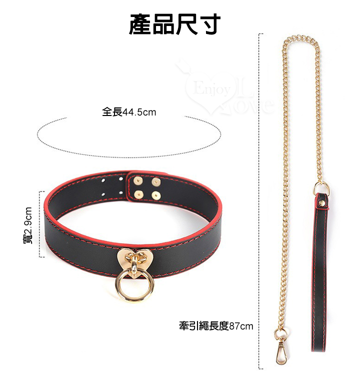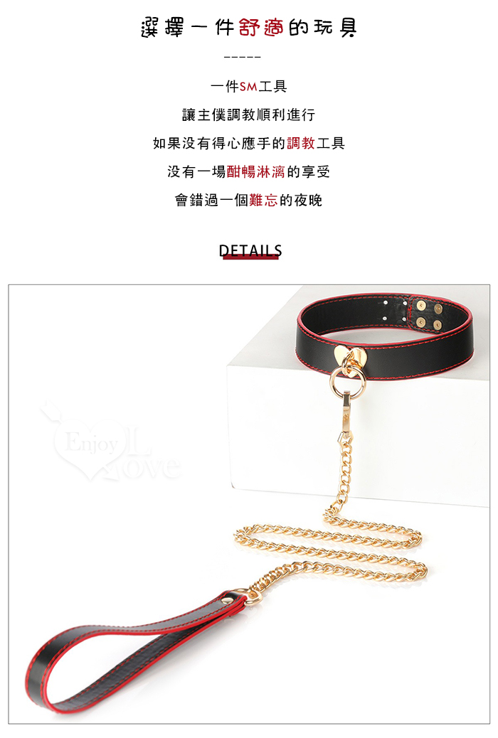 SM 刑奴扮演 ‧ 黑紅色真皮項圈+牽引繩~金屬粗鐵鏈組合