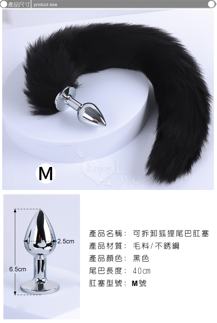 激性扮演狐狸精 ‧ 不銹鋼後庭肛塞+尾巴毛 - 黑﹝M 可組裝拆卸﹞