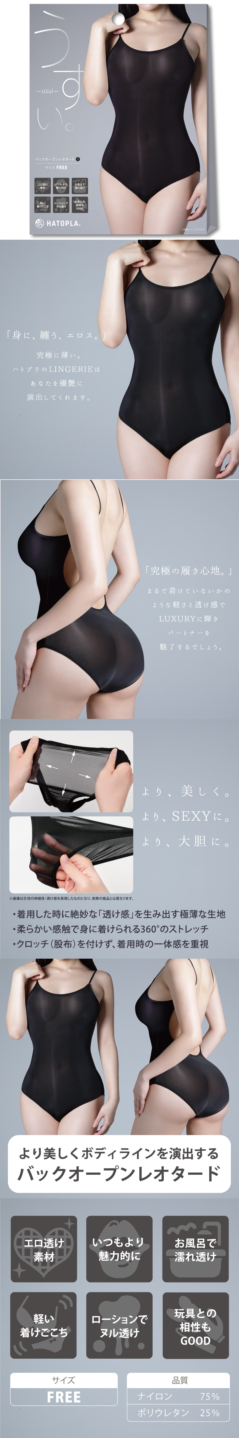 EXECUT極薄挖背連身衣-黑