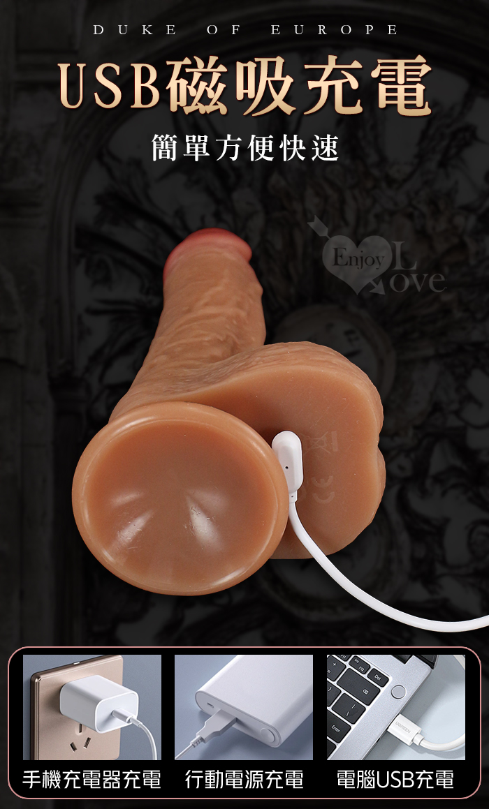 ►您現在的位置:首頁>歐洲公爵 ‧ 無線遙控抽送撞擊 液態矽膠超肉感逼真大老二﹝強勁蠕動伸縮震動+加溫+吸盤+磁吸充電﹞