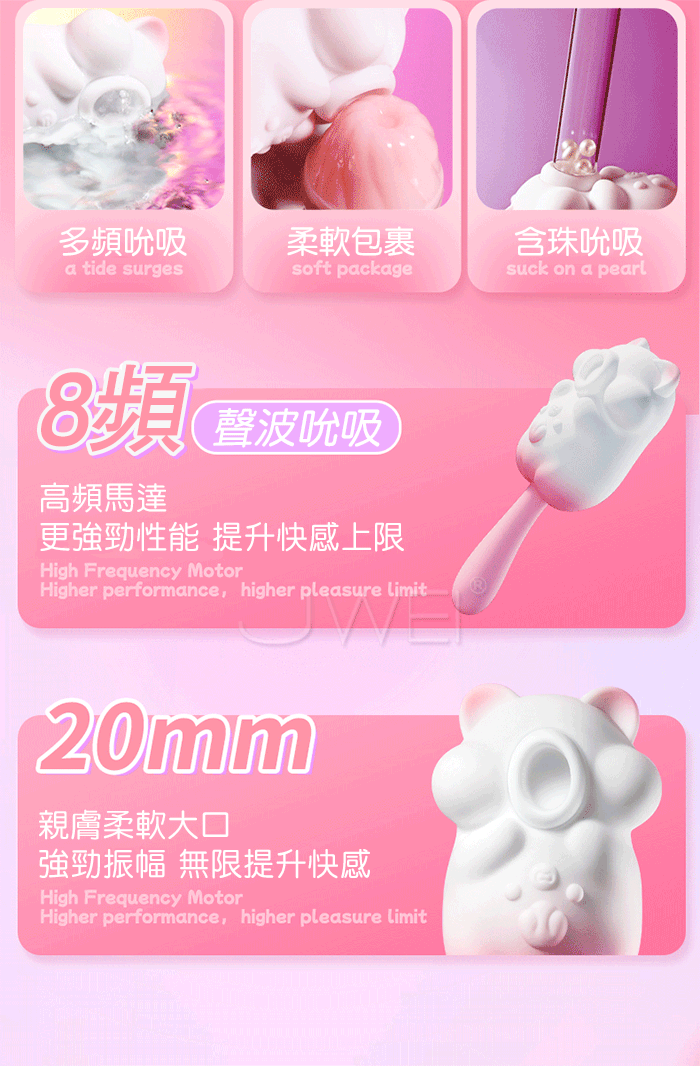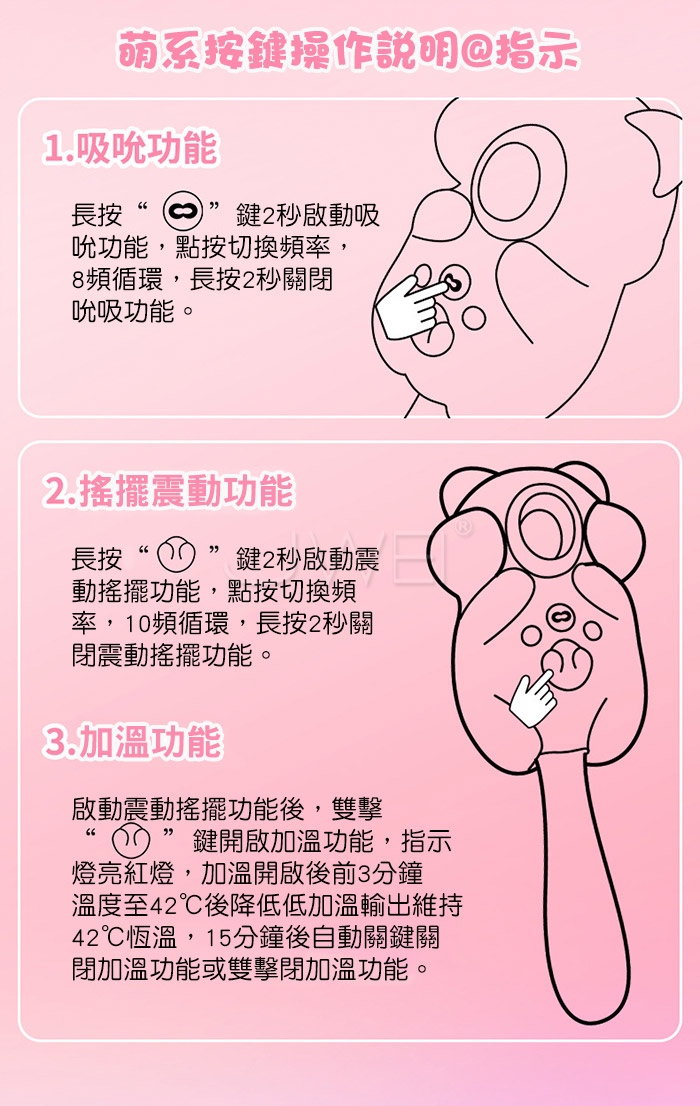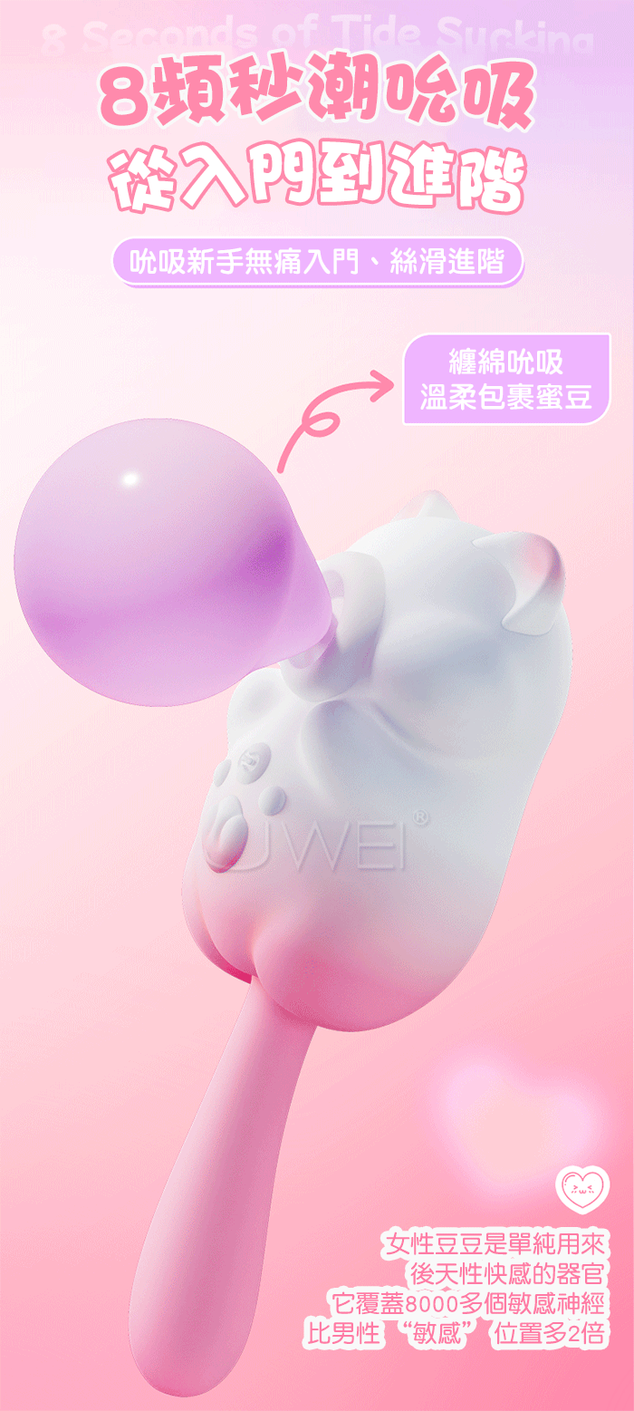 萌系拍打.8頻秒朝吮吸+10頻尾部搖擺攪動加溫按摩器