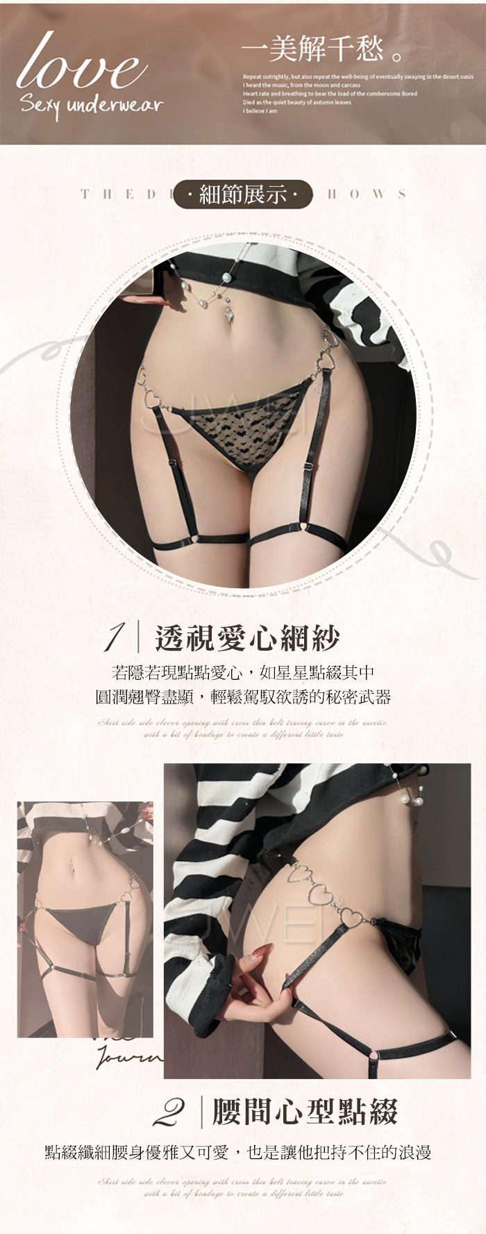 極夜誘惑.愛心鏈條綴腰吊帶低腰開襠褲【黑網愛心】
