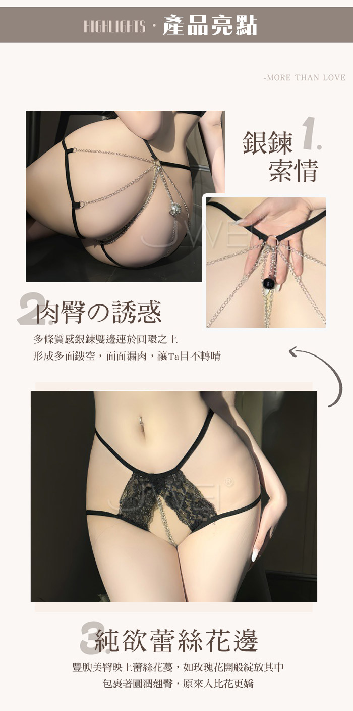 魅惑響鈴.金屬圓環鏈條勒臀蕾絲開檔內褲【黑鈴噹】