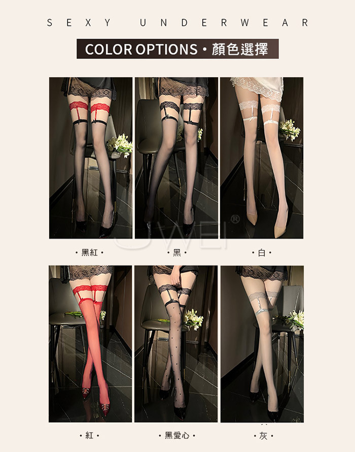 慾情誘惑.法式蕾絲花邊 蝴蝶結腿環長筒過膝絲襪【黑絲愛心】