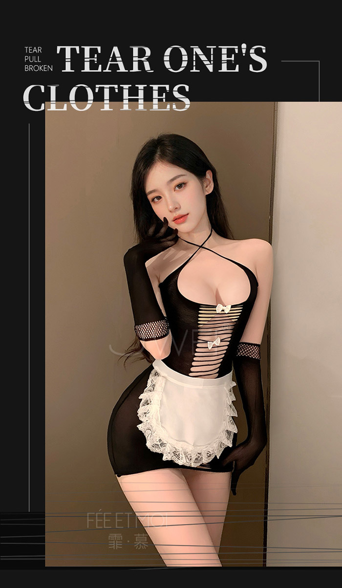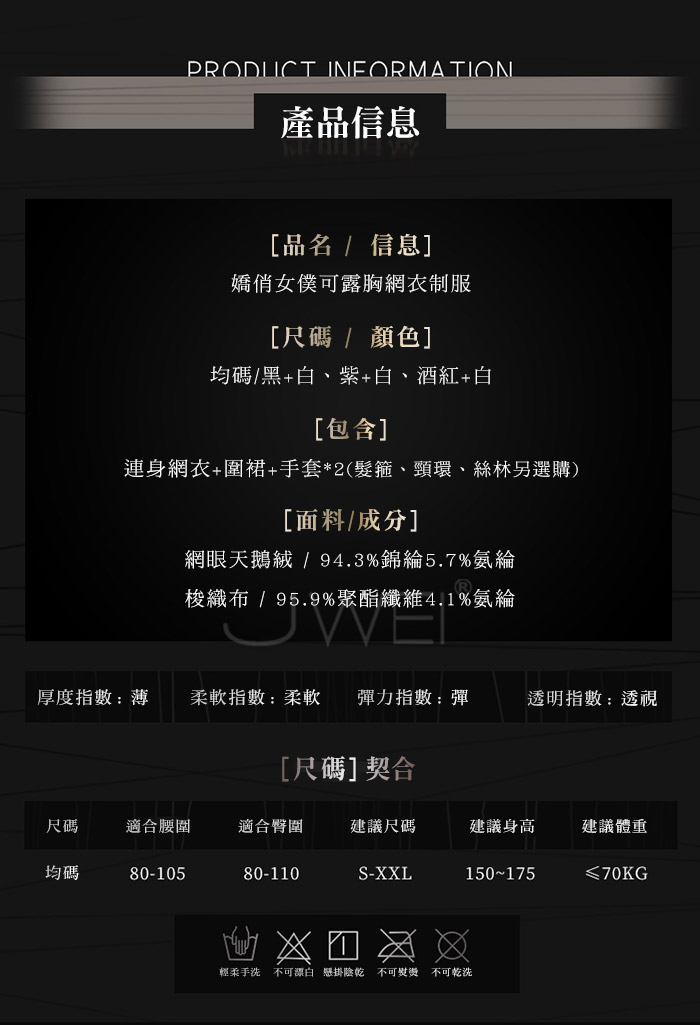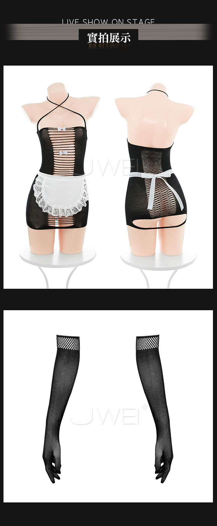 ►您現在的位置:首頁>嬌俏女僕.火辣條紋露胸可撕網衣女樸套裝-紫【連身網衣+圍裙+手套*2】