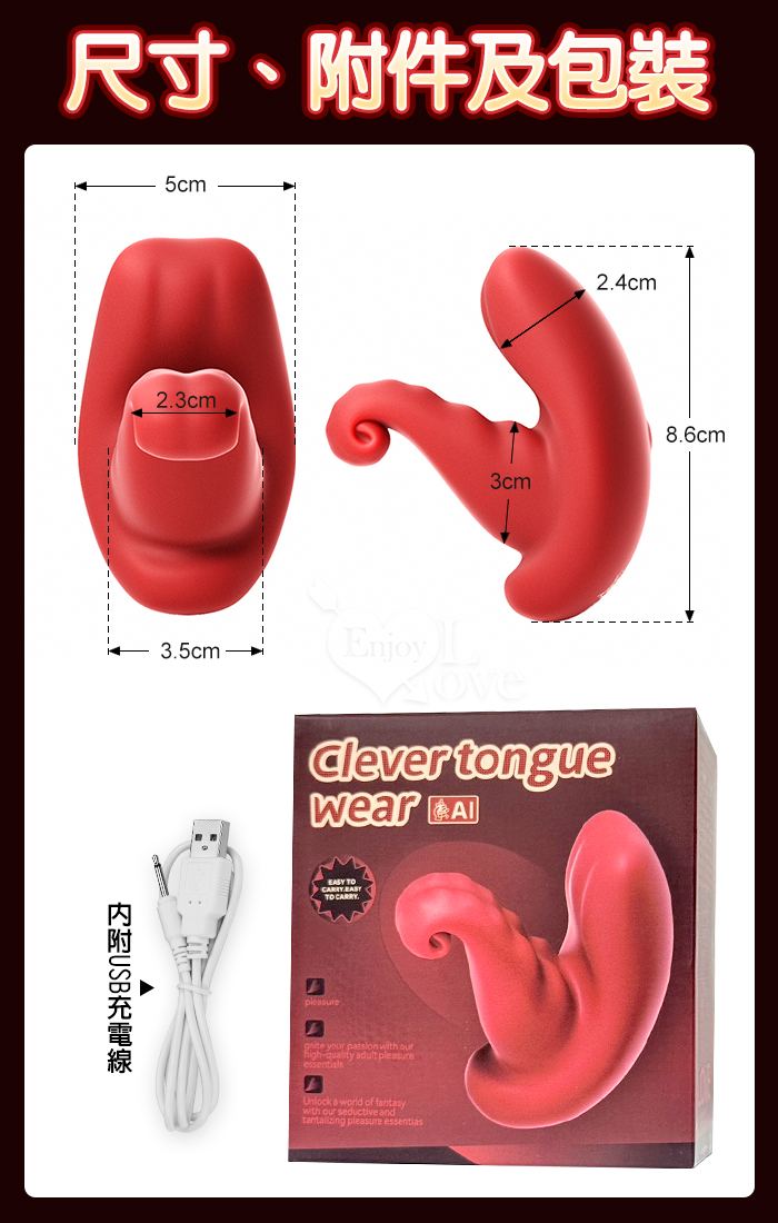 勞樂斯 ‧ 巧舌之吻~雙電機/10頻強震/超軟糯/貼合入體/內外同爽/手機APP/ 百變玩法穿戴按摩器 ﹝具兩種操控模式﹞酒紅
