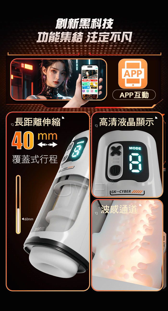 GALAKU.賽博引力 9頻伸縮爆榨 波感通道漩渦虹吸收緊 APP操控智能飛機杯