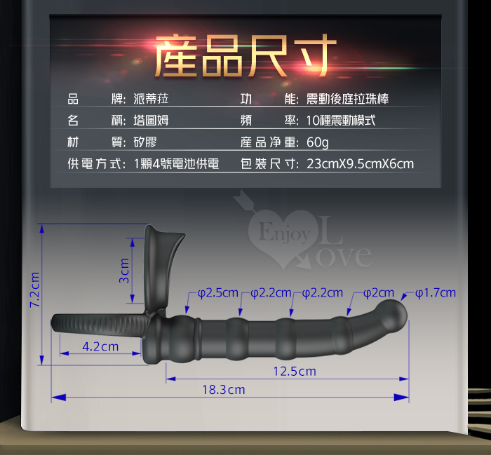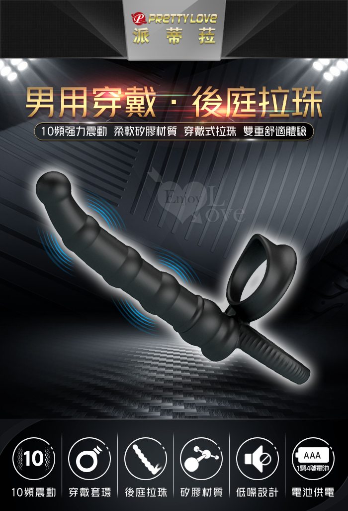 派蒂菈 ‧ TATUM 塔圖姆 男用穿戴束精雙套環~10變頻震動後庭拉珠棒